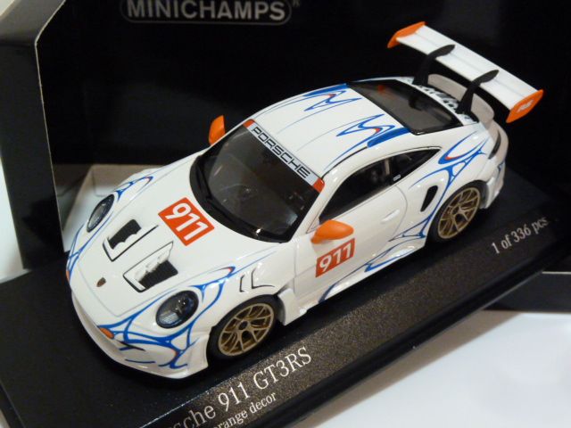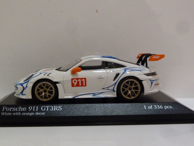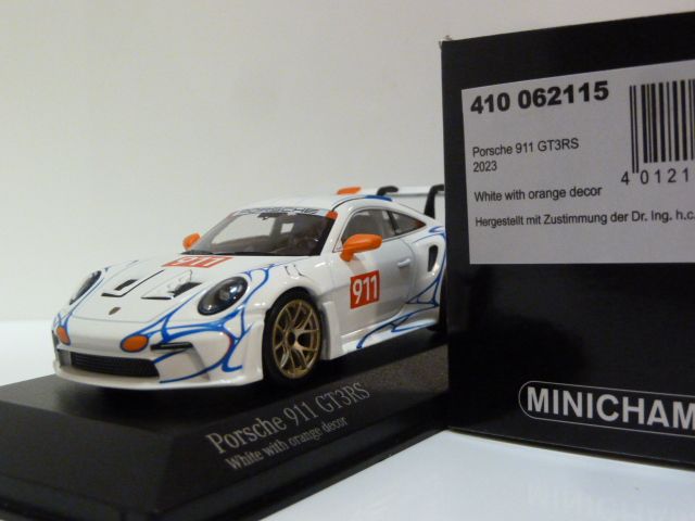 410062115 Minichamps Porsche 911 (992) GT3 RS White W/ Orange Decor 1:43 #911 w/ Orange Decor