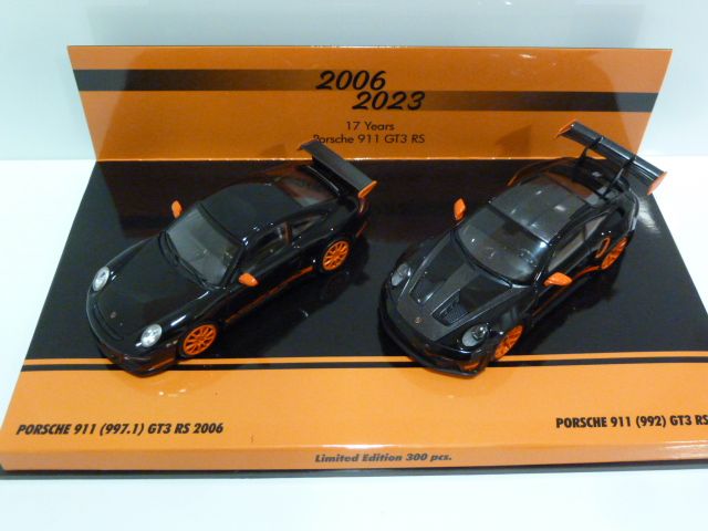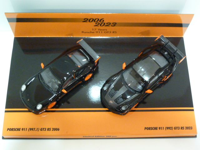 413062191 Minichamps Porsche 911 (997+992) GT3 RS Black W/ Orange 1:43 2016 - 2023 17 Years GT3 RS